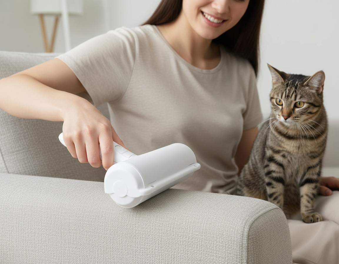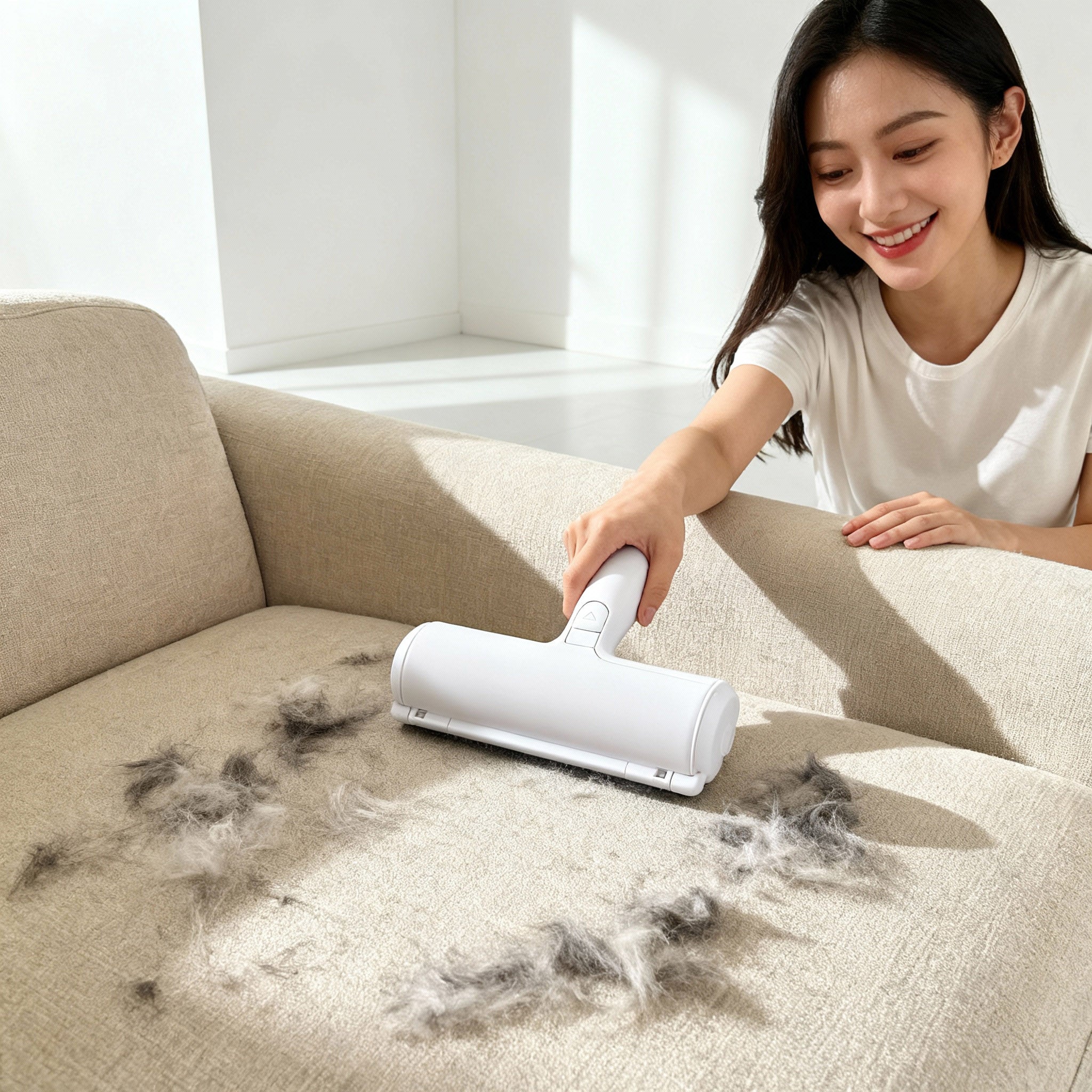From sofa to pants to car. One cuddle and your outfit collects hair that brushes can’t lift fast.