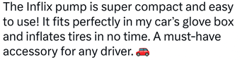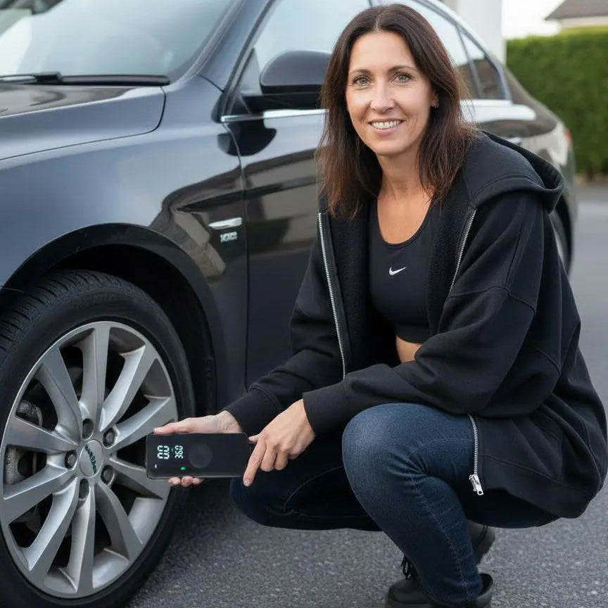 I noticed the tire pressure drop on the road and honestly thought my trip was over. Inflix was already in the car, and it solved the problem in minutes. Super easy to use.