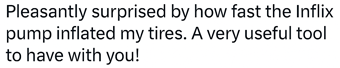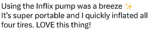 Inflix really nailed the balance between size and functionality. It inflates tires fast, stores neatly in my car, and the built-in light is a lifesaver at night. I love the power bank feature too.