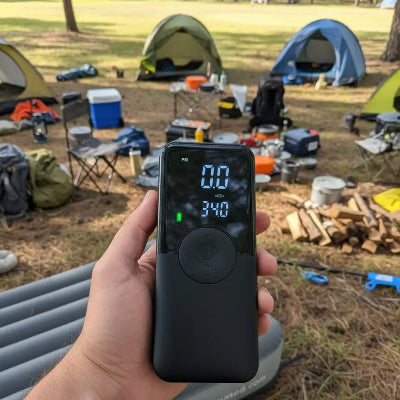Took it with me camping, inflated a mattress in about 2 minutes — really useful and not heavy at all.