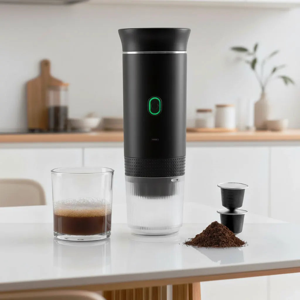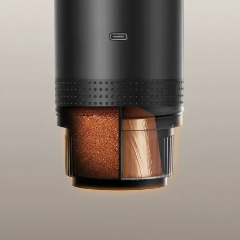 Tripresso™ works with both Nespresso® capsules and standard ground coffee. You can switch between formats depending on your mood or situation. This flexibility makes it ideal for travel, office use, and everyday brewing.